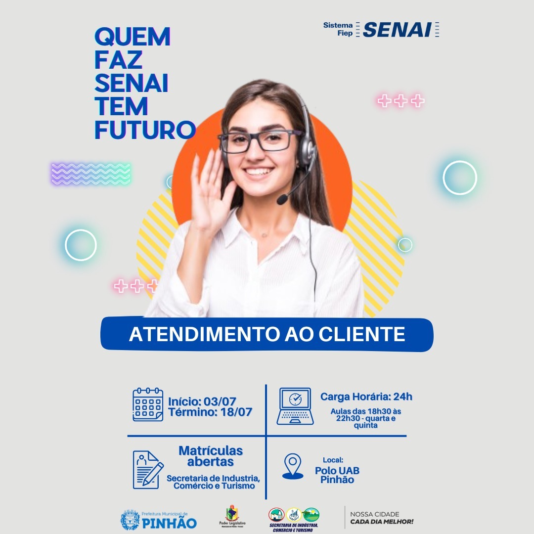 🎯SECRETARIA DE INDÚSTRIA , COMERCIO E TURISMO INFORMA: MAIS UM CURSO GRATUITO EM PARCERIA COM SENAI: ” ATENDIMENTO AO CLIENTE” , MAIORES INFORMAÇÕES NA SECRETARIA.