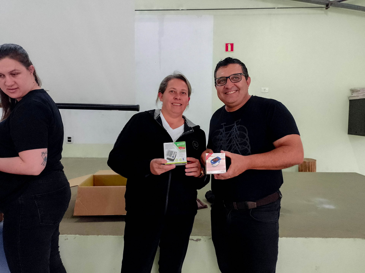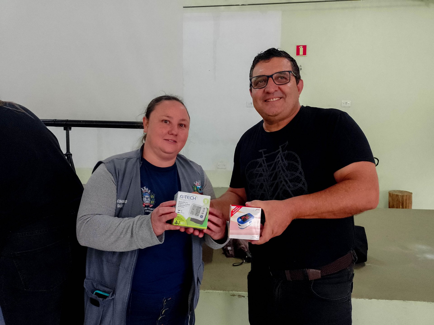 Após a conclusão dos Cursos Técnicos do Programa Saúde com Agente e a entrega de tablets aos agentes comunitários na tarde de ontem, 04 de setembro, a secretaria municipal de saúde promoveu a distribuição de oxímetros e aparelhos de pressão digital.