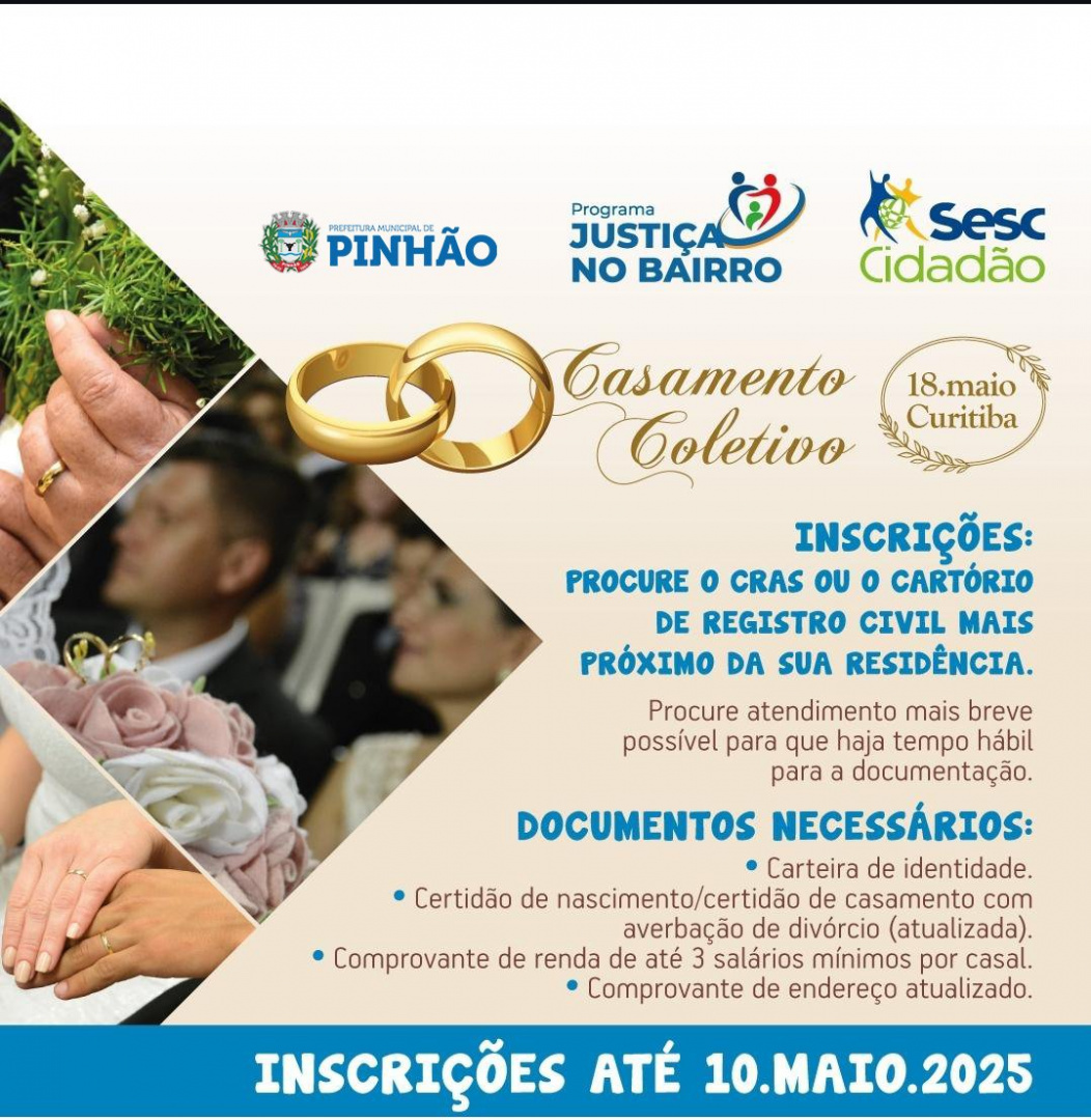 Estão abertas as inscrições para o Casamento Coletivo 2025, um evento gratuito para casais que desejam dizer “sim” de forma especial e sem custo!