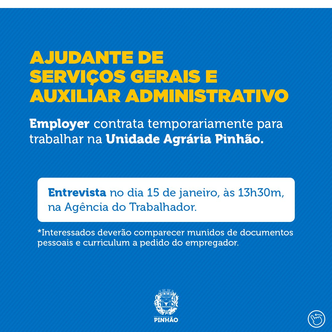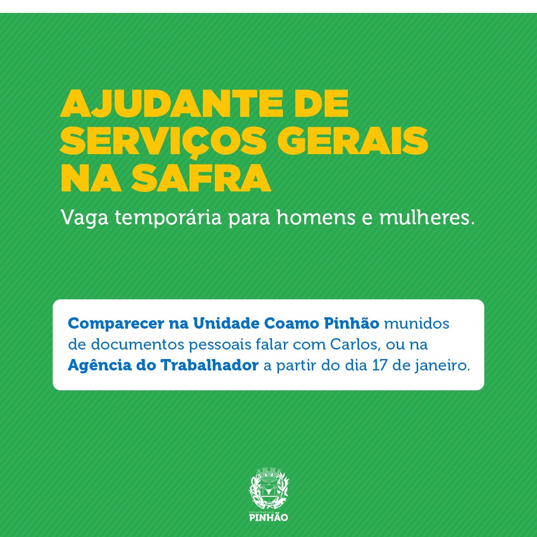 A Agência do Trabalhador de Pinhão-PR informa vagas disponíveis
