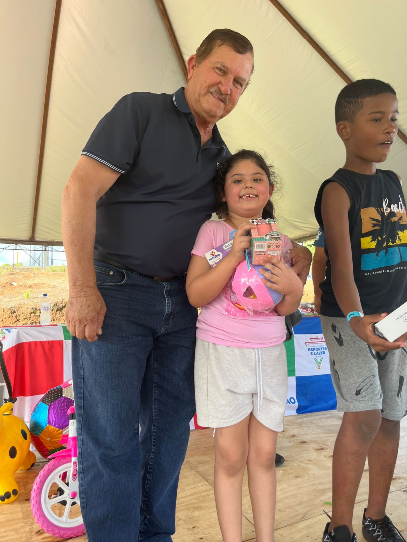 Na tarde deste domingo, 13 de outubro, aconteceu o evento “A Praça é Nossa 2024”, em comemoração ao Dia das Crianças, na Praça Darci Brolini. A festividade contou com a presença do secretário de Esportes e Lazer, Henrique D’Oliveira, do prefeito Valdecir Biasebetti e da vereadora Luzyana Rocha Tavares.