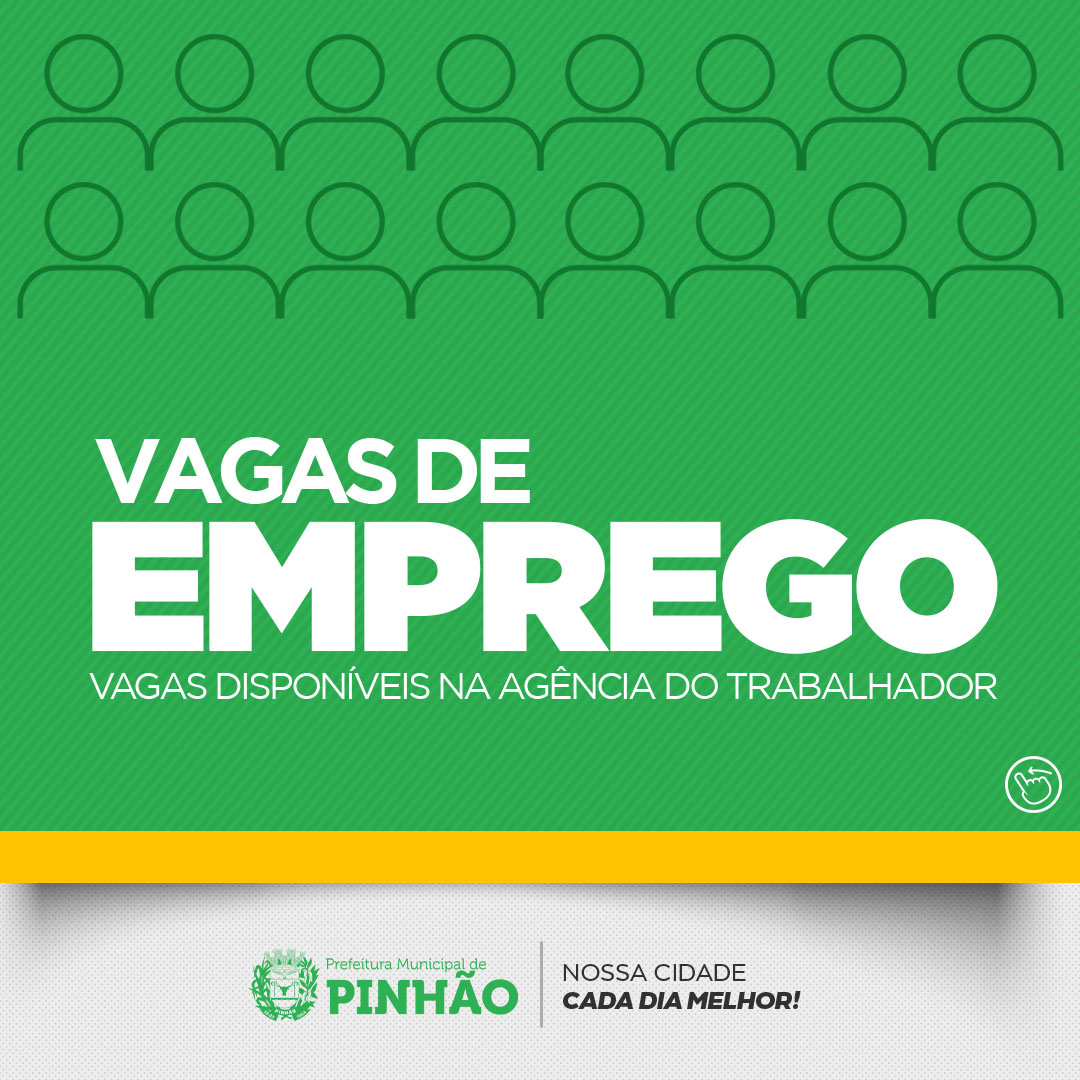 Agência do Trabalhador de Pinhão informa vagas disponíveis.