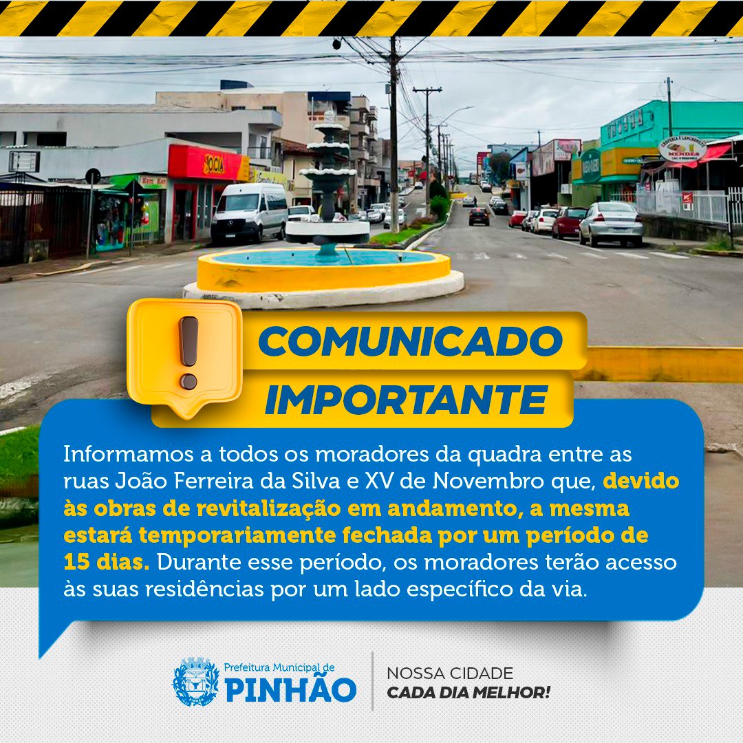 As obras continuam a todo vapor e, hoje, dia 07 de fevereiro, os trabalhos terão início na quadra entre as ruas João Ferreira da Silva e XV de Novembro.