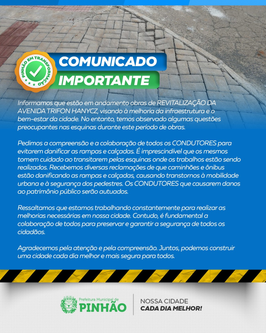 É imprescindível que os mesmos tomem cuidado ao transitarem pelas esquinas onde os trabalhos estão sendo realizados.
