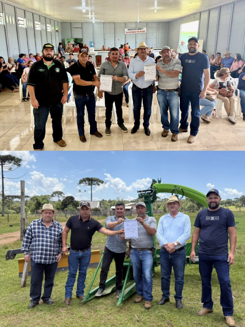 No último sábado dia 29 de novembro, a comunidade de são Roque recebeu das mãos do prefeito Valdecir Biasebetti, do secretário de agricultura e pecuária Rosmário Ramos dos Santos, do vereador Edson Adrian e do ex-vereador Alexsandro Camargo, implementos que irão auxiliar o dia a dia dos agricultores e pecuaristas daquela comunidade. Um resfriador de leite, uma ensiladeira e uma plaina traseira investimento de R$50 mil ( Cinquenta Mil Reais), e que atenderá toda a comunidade local. Durante a reunião do Conder que estava acontecendo naquela comunidade o prefeito Biasebetti falou dos avanços que vêm acontecendo para aquela população: “ A tão sonhada escola em tempo integral já está tomando forma em breve muitos e muitos alunos poderão usufruir desse espaço, e quero anunciar a todos que na próxima semana estaremos assinando o convênio para a licitação dos 29 KM que serão realizados aqui nesta comunidade, e aproveitando a presença de todas as associações, os 15 tratores prometidos em breve serão entregues “. Disse o prefeito.