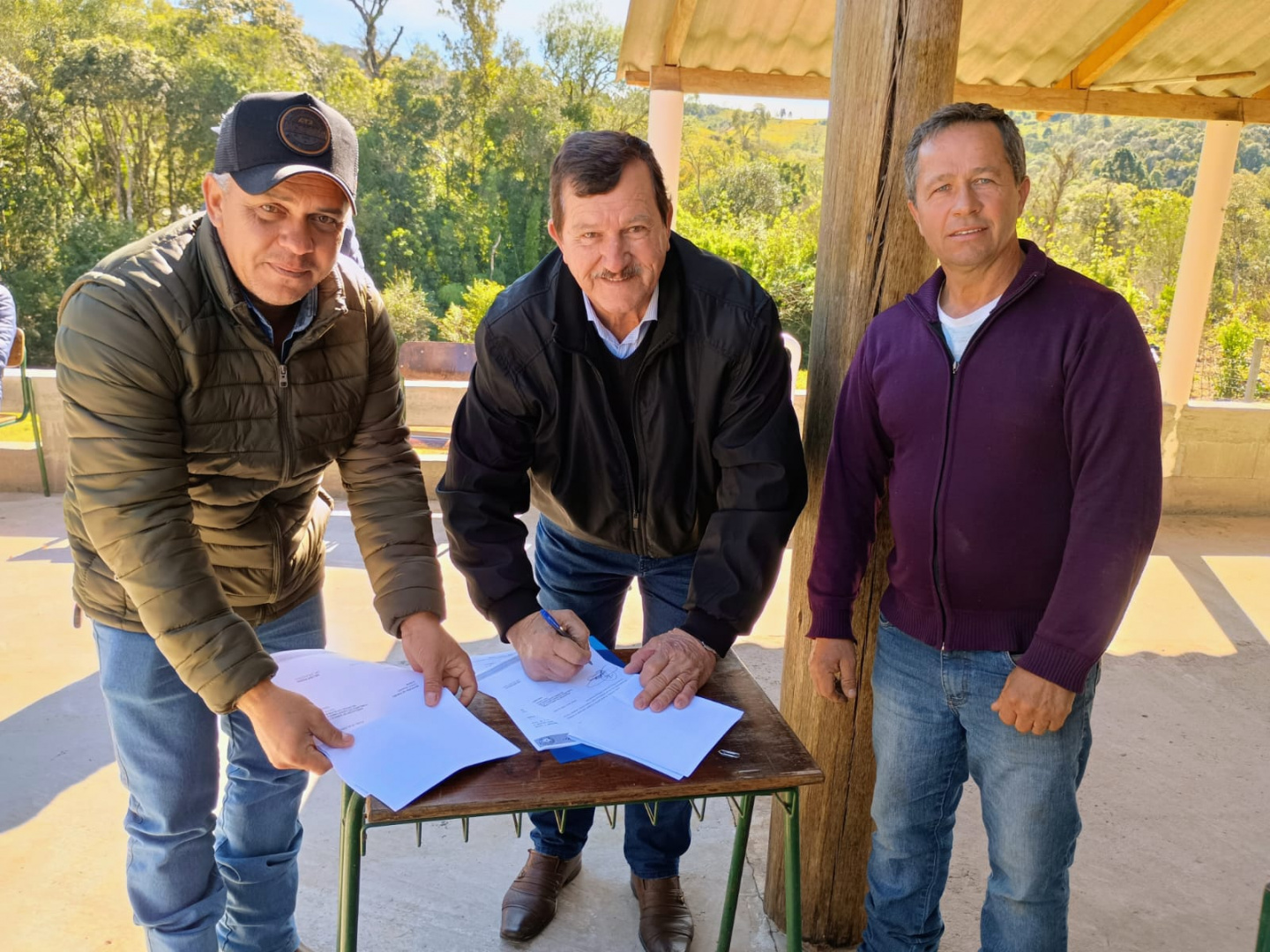 Estiveram participando da entrega lideranças da região, o prefeito Biasebetti, e o secretário de Agricultura Rosmário dos Santos.