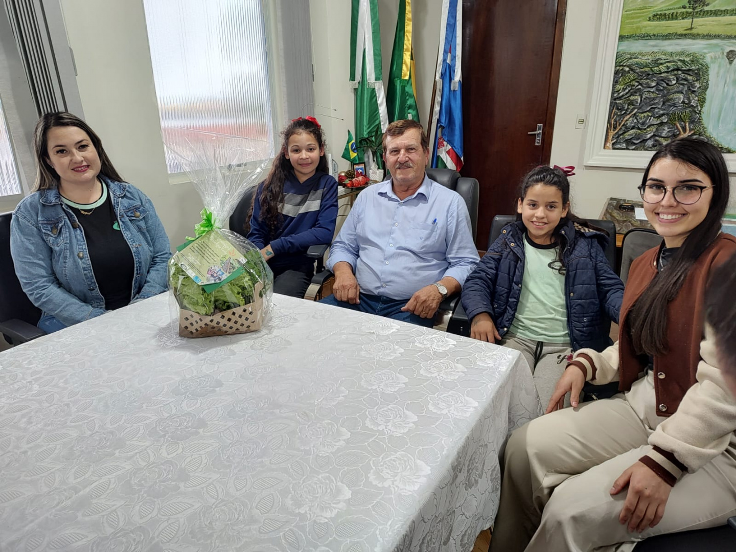 Na tarde desta terça-feira, 12/11, os alunos da Escola Municipal Água Verde estiveram no gabinete do prefeito Valdecir Biasebetti para convidá-lo para a Feira Agroecológica da escola, marcada para o dia 3 de dezembro! ![]()