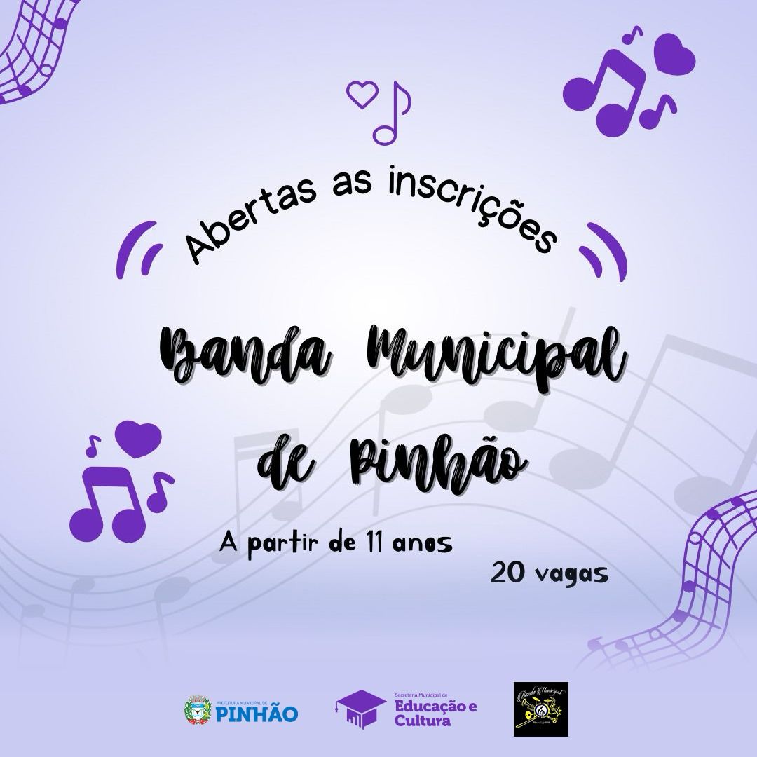 A Banda Sinfônica Municipal de Pinhão informa que as inscrições para novos membros estão abertas e podem serem feitas na sede da Banda ou no Departamento de Cultura. 🎺🥁
