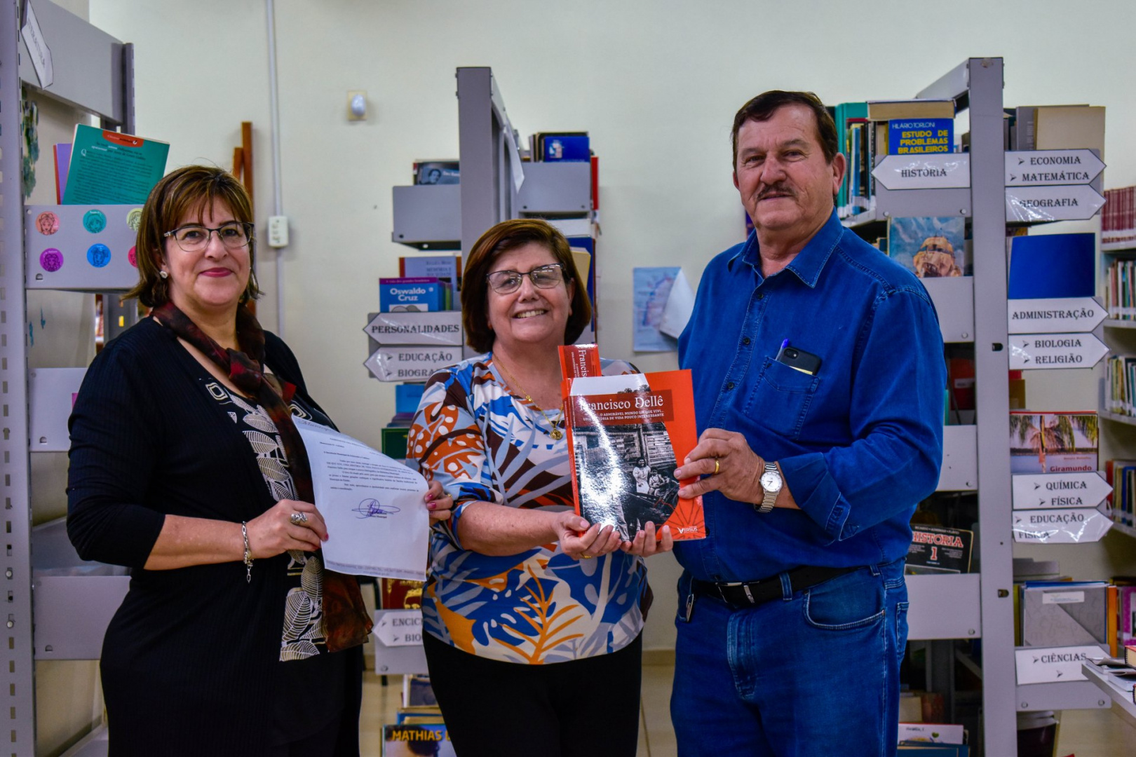 Nesta tarde do dia 04 de outubro, o Prefeito Municipal Valdecir Biasebetti, entregou oficialmente o exemplar do Livro “O ADMIRÁVEL MUNDO EM QUE VIVI… UMA HISTÓRIA DE VIDA POUCO INTERESSANTE”,  DO AUTOR FRANCISCO DELLÊ, para fazer parte do acervo bibliográfico da Biblioteca Municipal, o livro foi doado pelo autor com o intuito de alcançar o maior numero de leitores, e para que jovens e futuras gerações conheçam a significativa história dessa família tradicional de Pinhão.