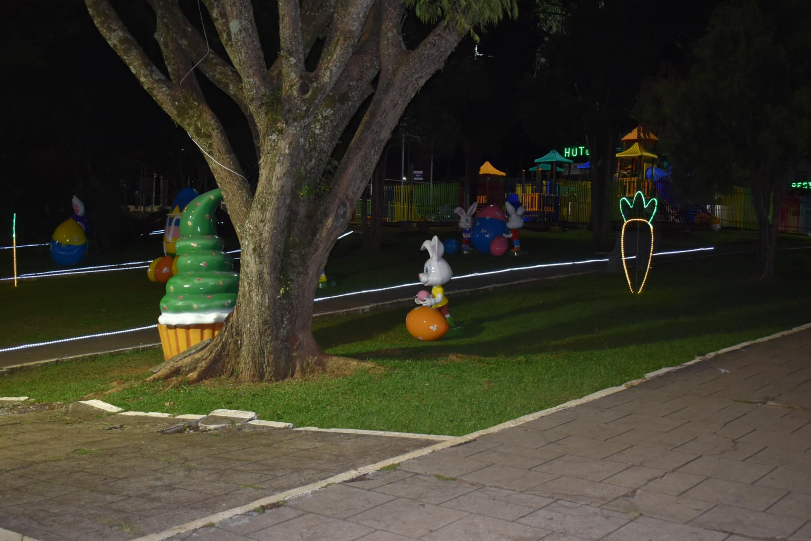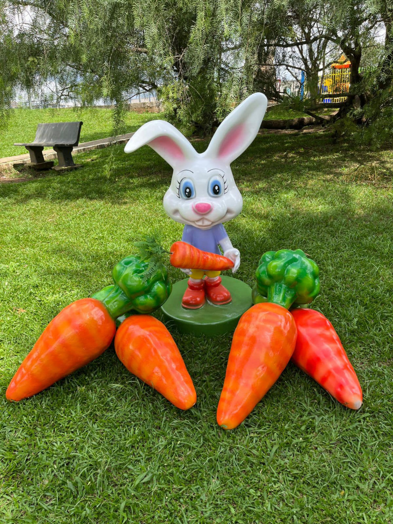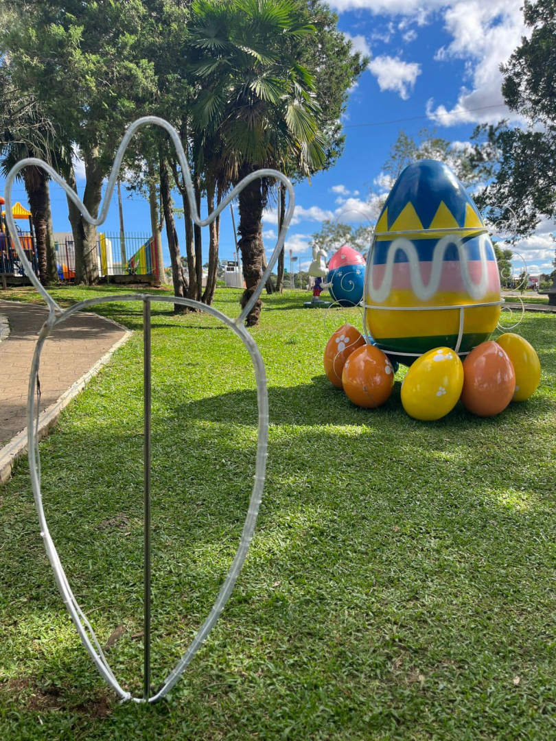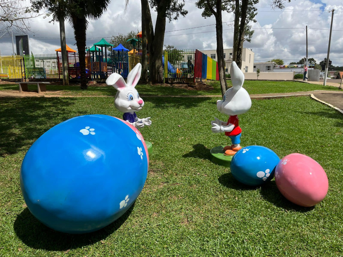 Os famosos coelhinhos, símbolo popular da Páscoa, já enfeitam a Praça Darci Brolini.