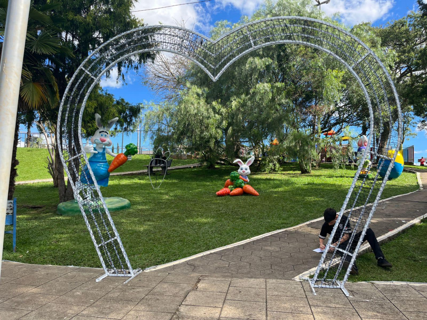 A decoração de Páscoa ficará instalada até o dia 10 de abril.