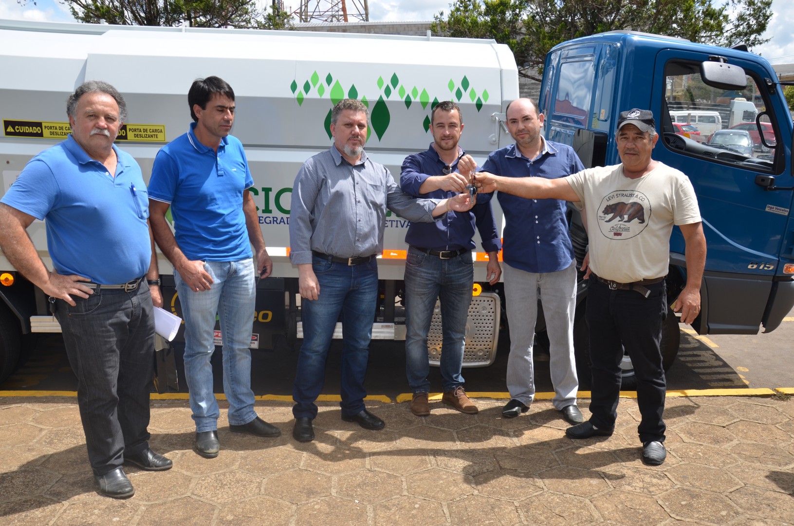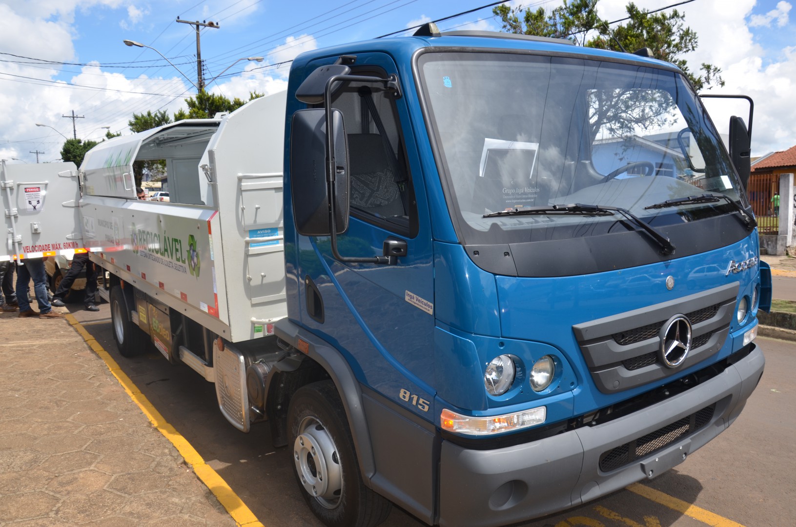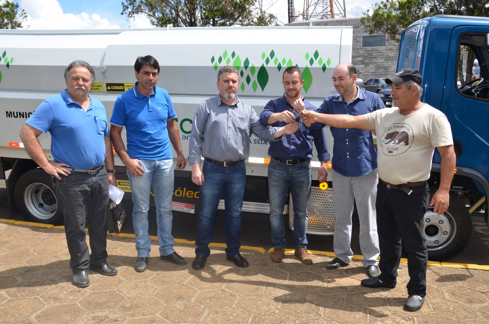 Prefeito Dirceu de Oliveira faz entrega juntamente com o secretário de Obras Mario Dôliveira de um caminhão para coleta de recicláveis do Programa de Coleta Seletiva – Instituto das Águas do Paraná, Convênio do Governo do Estado com o Município.