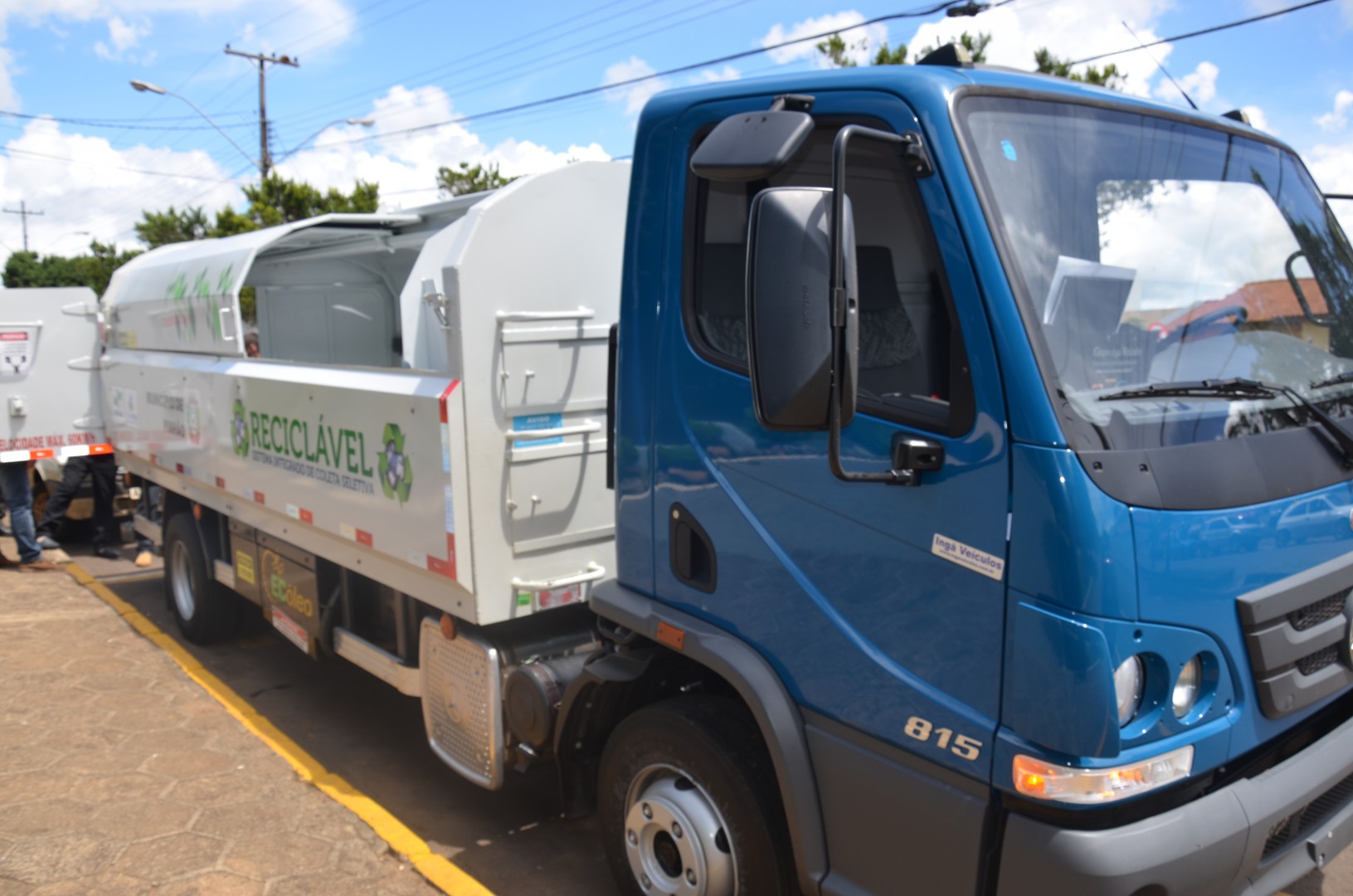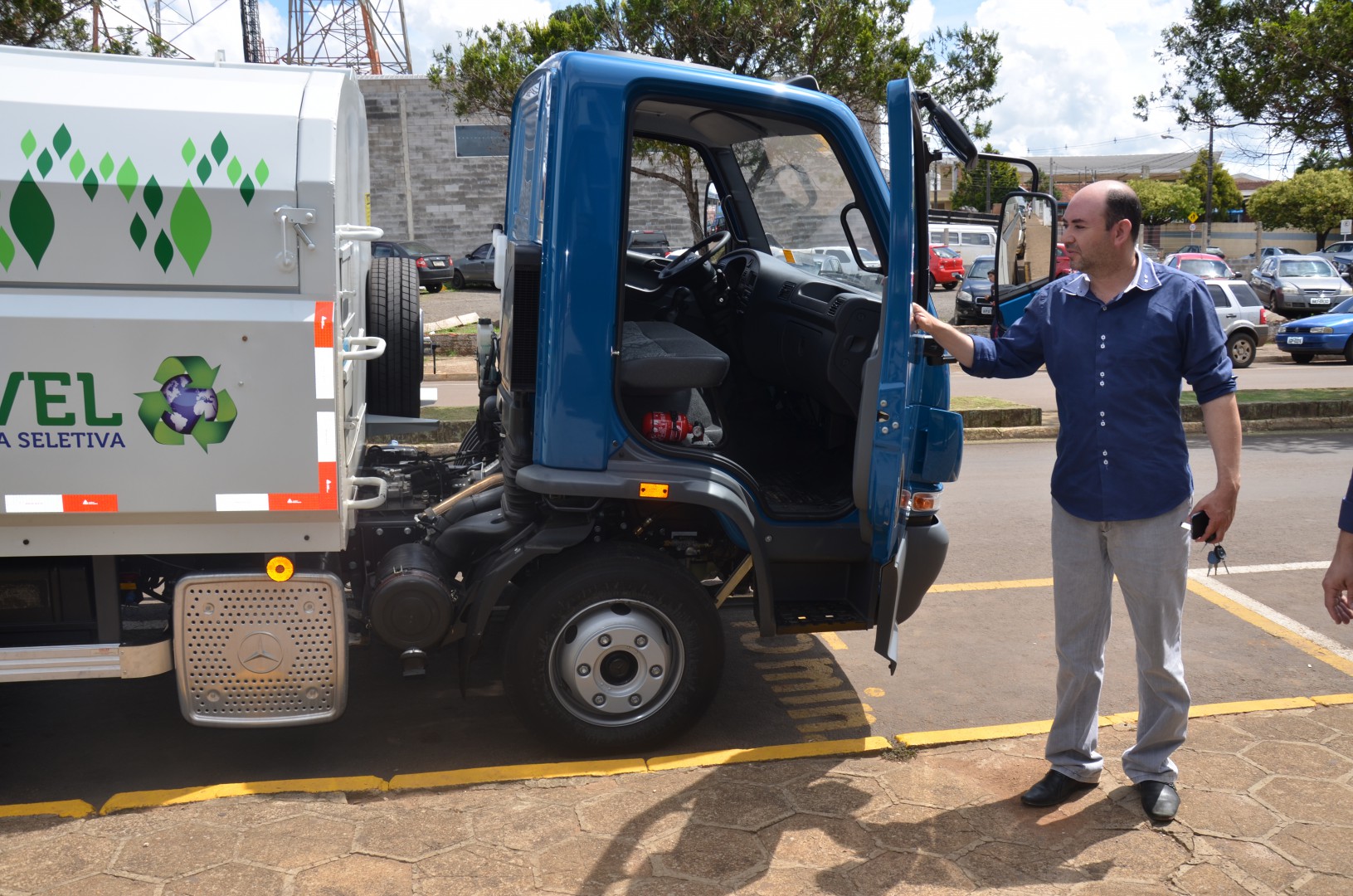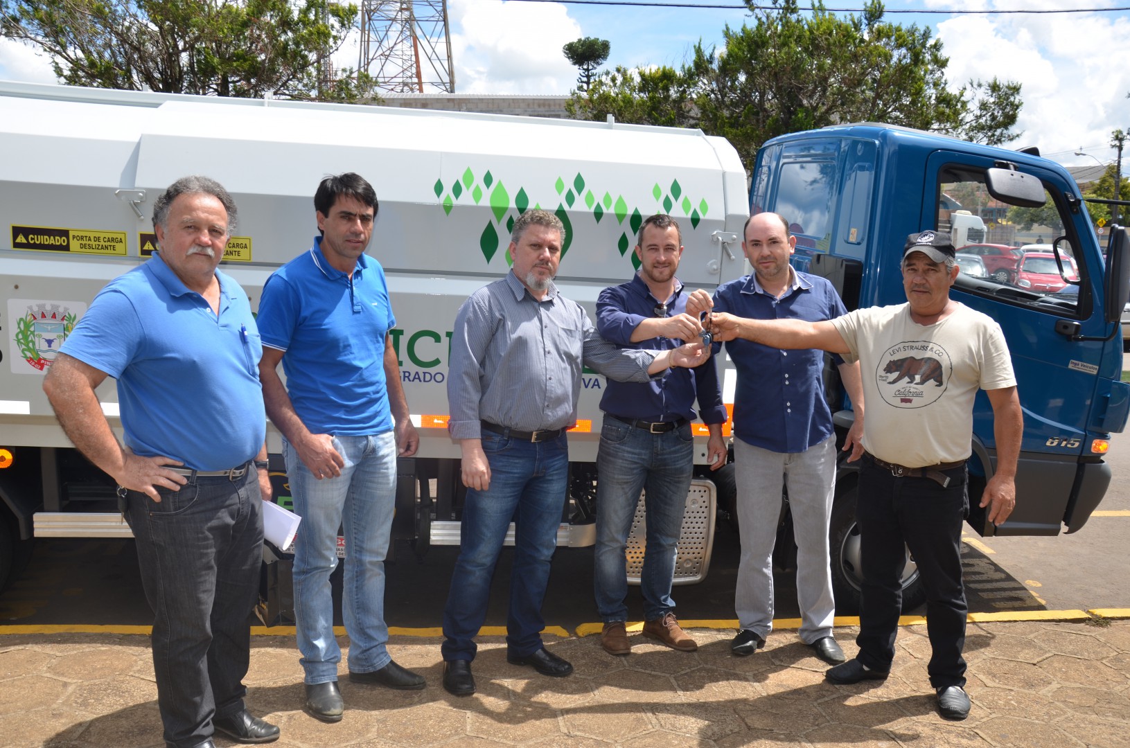 Prefeito Dirceu de Oliveira faz entrega juntamente com o secretário de Obras Mario Dôliveira de um caminhão para coleta de recicláveis do Programa de Coleta Seletiva – Instituto das Águas do Paraná, Convênio do Governo do Estado com o Município.