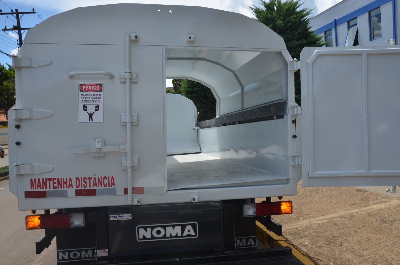 O caminhão é composto por coletor: contendo calhas para captação de líquidos com reservatório até 50 litros e depósito para o transporte de óleo de fritura já utilizado para até 200 litros. Plataforma retrátil de apoio na traseira para os trabalhadores da coleta.