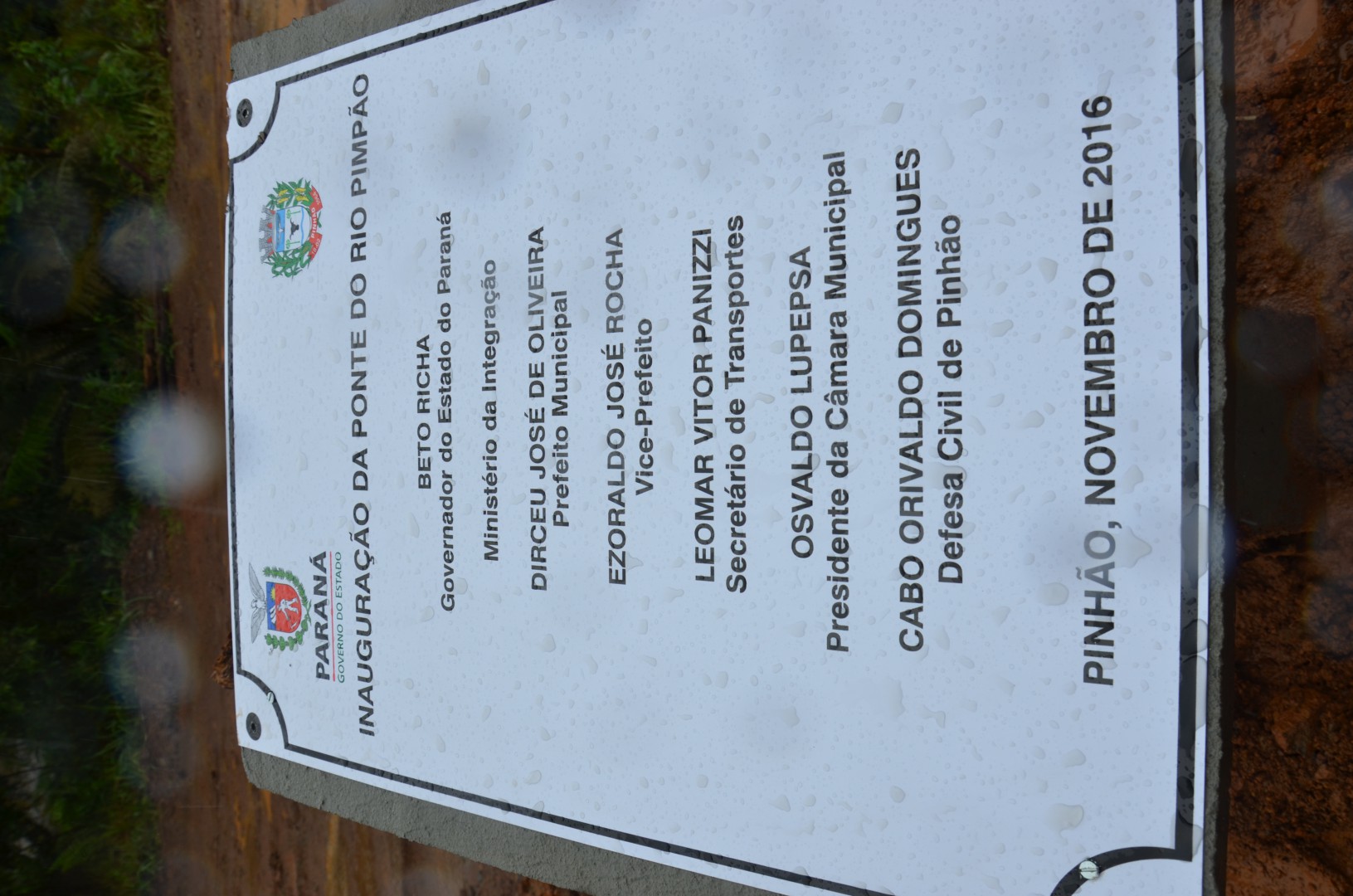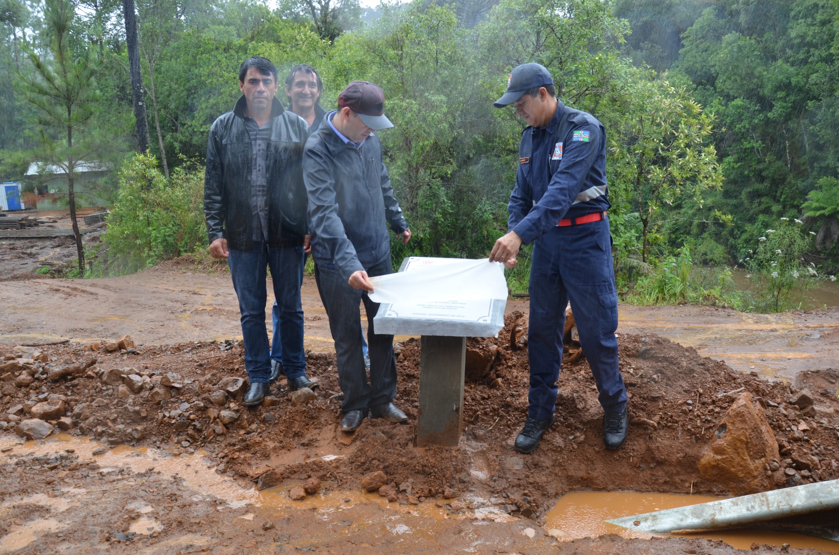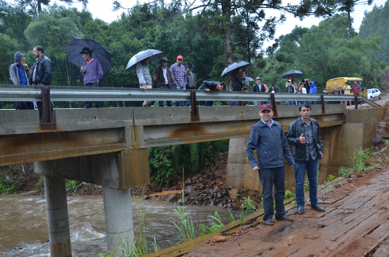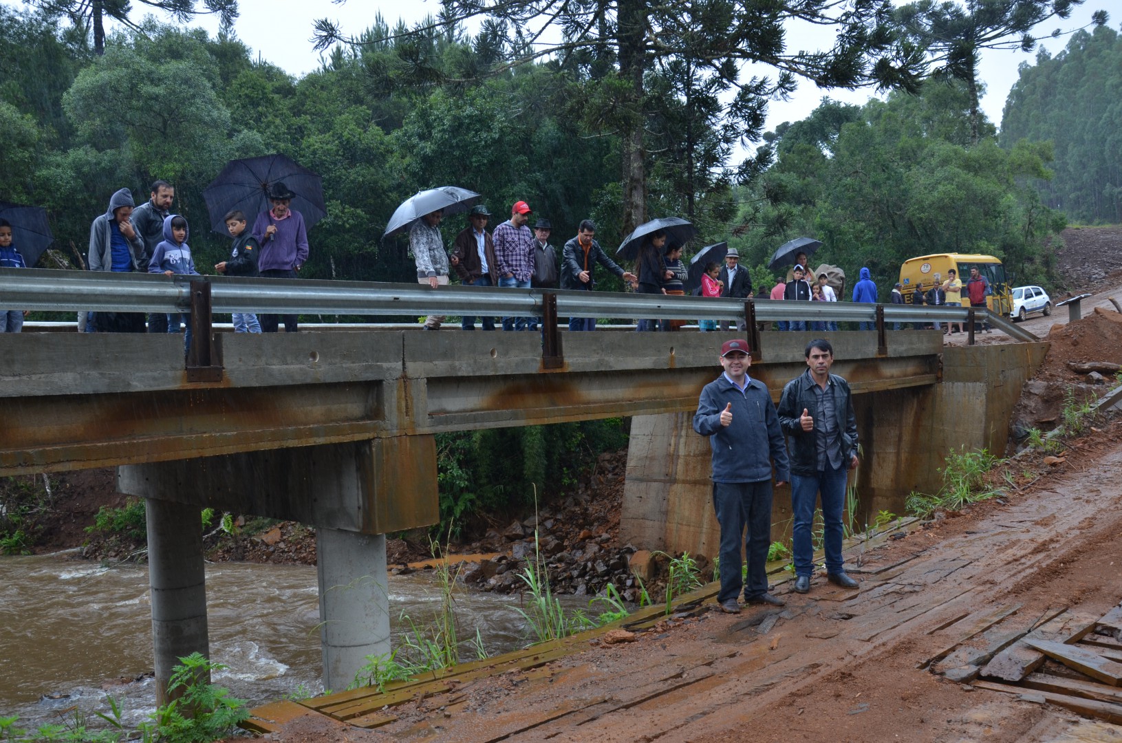 Nessa ocasião, houve grande empenho do secretário de Obras com o Prefeito e participação importantíssima da Defesa Civil de Pinhão, no intuito da construção urgente da ponte sobre o Rio Pimpão.