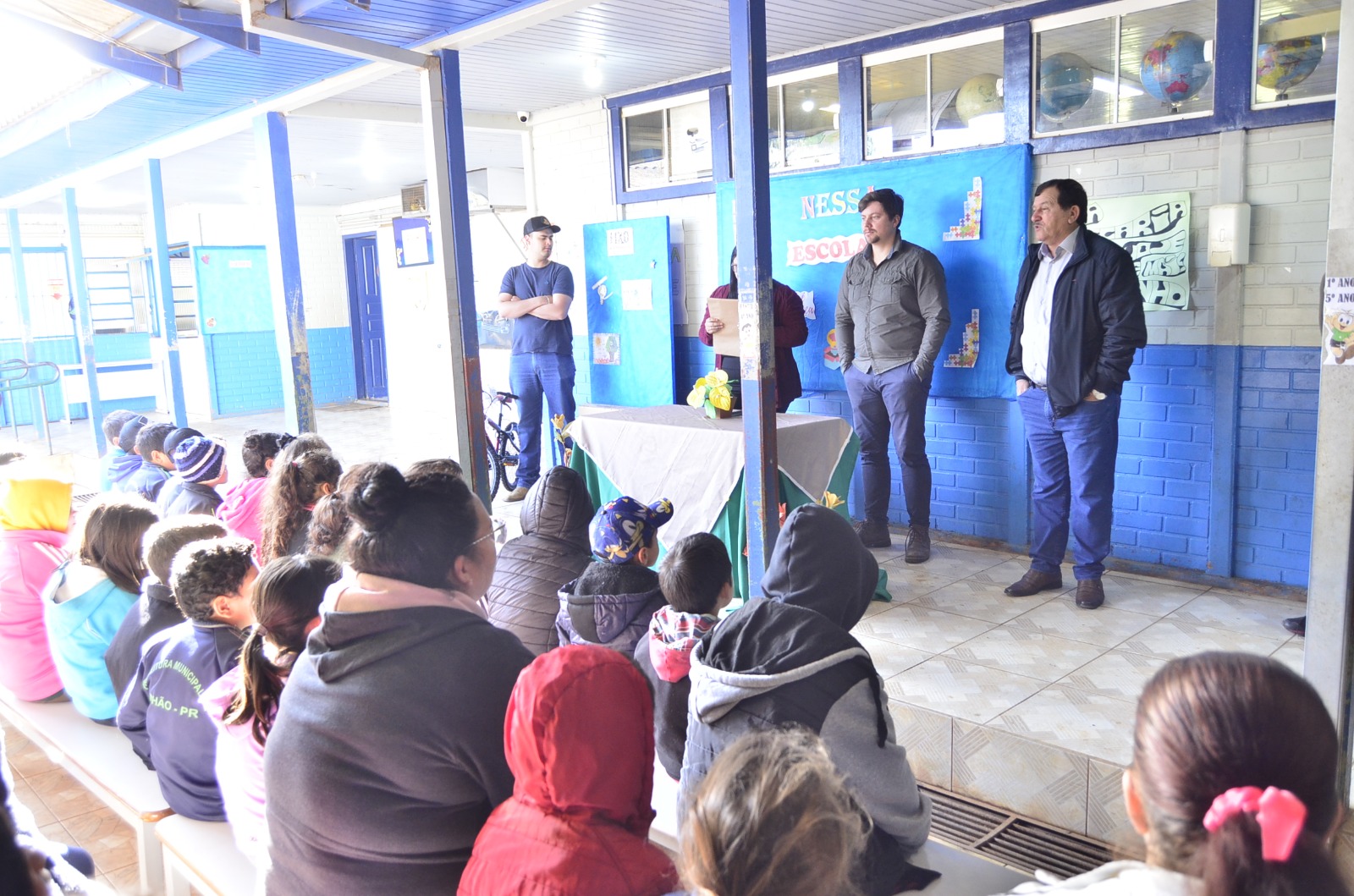 Na manhã do dia 04 de agosto, o prefeito Valdecir Biasebetti e o secretário municipal de Meio Ambiente, Obras e Urbanismo, Wilcar Paracabocz, estiveram presentes na Escola Municipal São Roque Educação Infantil para a emocionante cerimônia de premiação do Concurso “Lixo Zero”. O programa consistiu em palestras educacionais sobre a importância do descarte adequado de lixo e a prática da reciclagem.