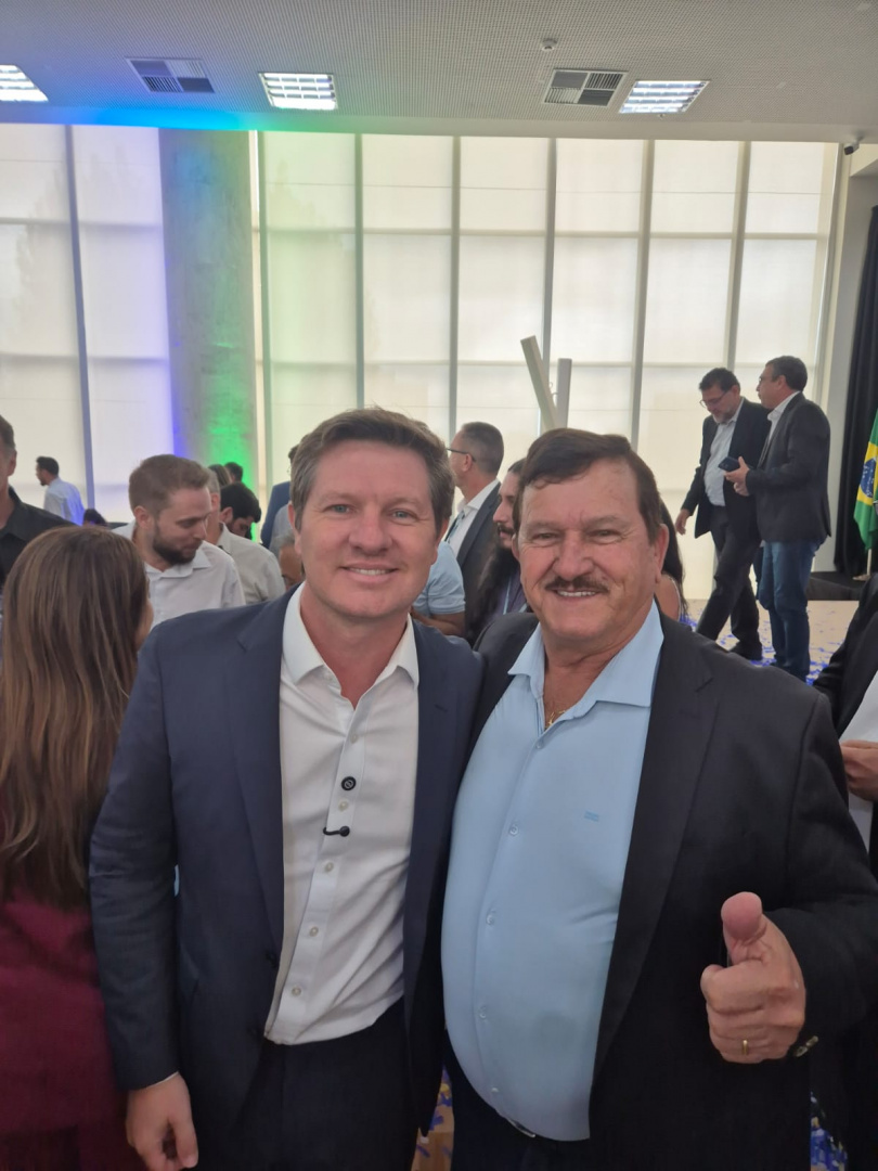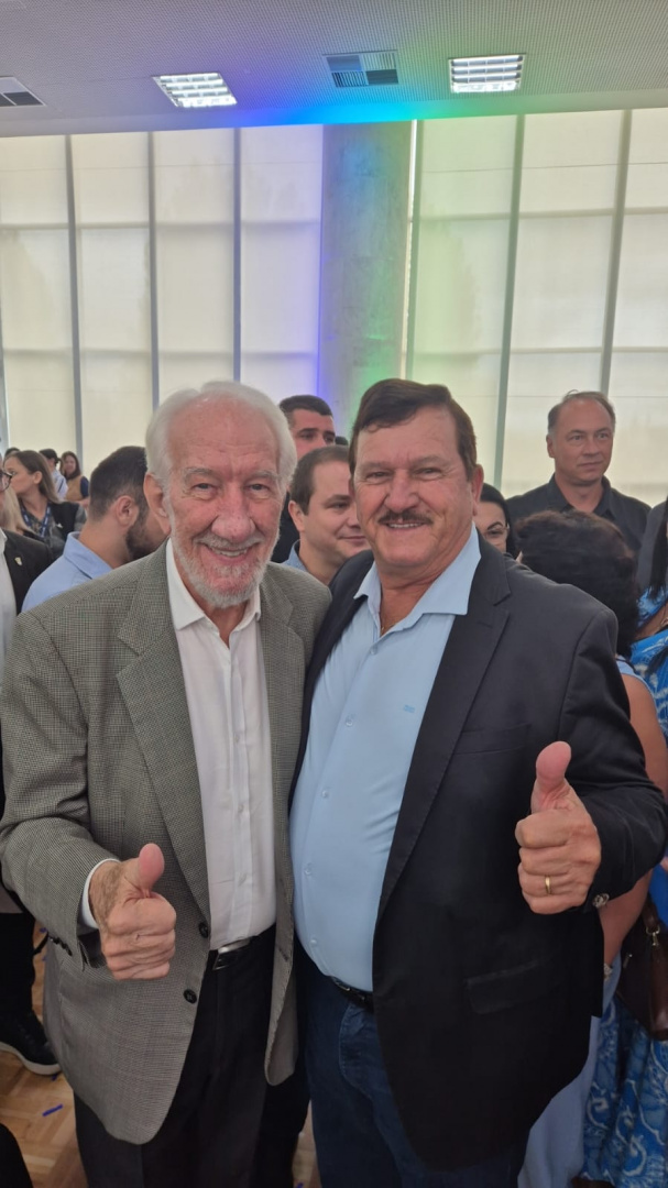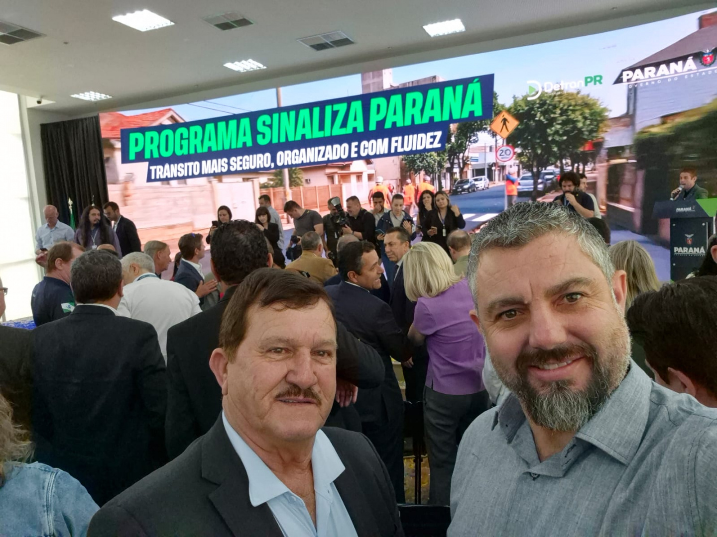 O prefeito de Pinhão, Valdecir Biasebetti, juntamente com o secretário de Administração, Edilson Sant’Anna Filho, estiveram na capital para o lançamento do programa.