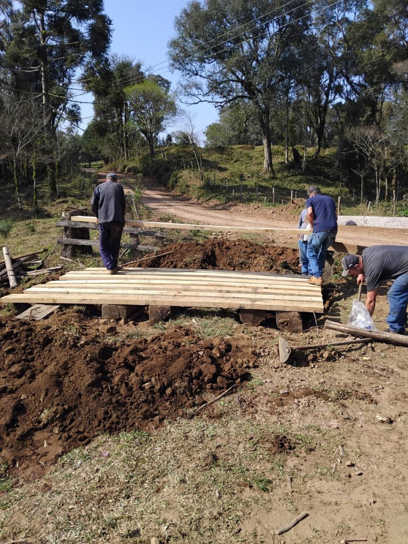 As equipes estão atuando em Faxinal dos Coutos e, a partir de amanhã, para Pocinhos e outras localidades, realizando patrolamento, cascalhamento e a recuperação de pontes.